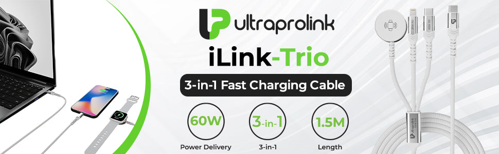 The iLink-Trio is equipped with three output connectors—USB-C, iPhone, and iWatch—allowing you to charge multiple devices simultaneously. No need for multiple cables; reduces clutter and ensures compatibility with a wide range of devices. Ideal for travel and daily use.