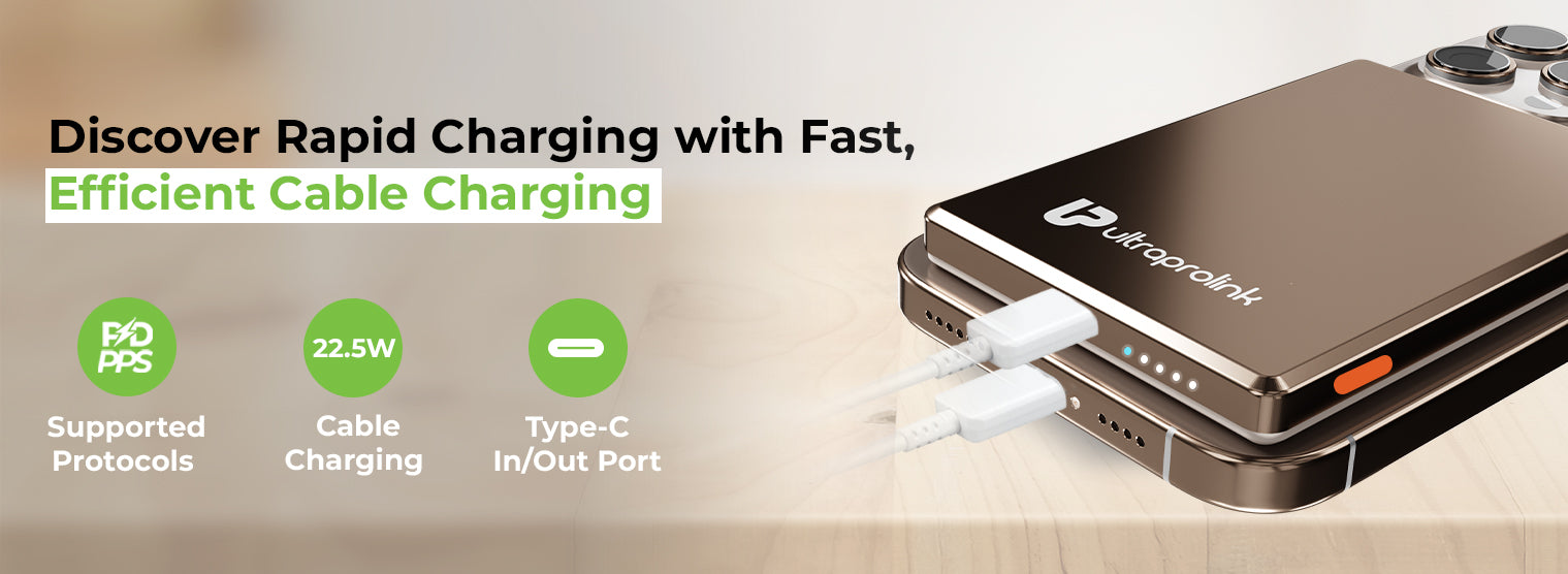 Discover rapid charging via cable with 22.5W via Type-C supporting PD-PPS protocols. Juice-Up Mag 4 ensures your devices stay powered with fast, efficient cable charging if you ever need it.