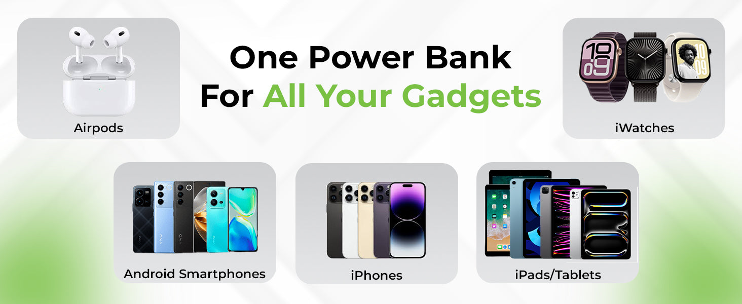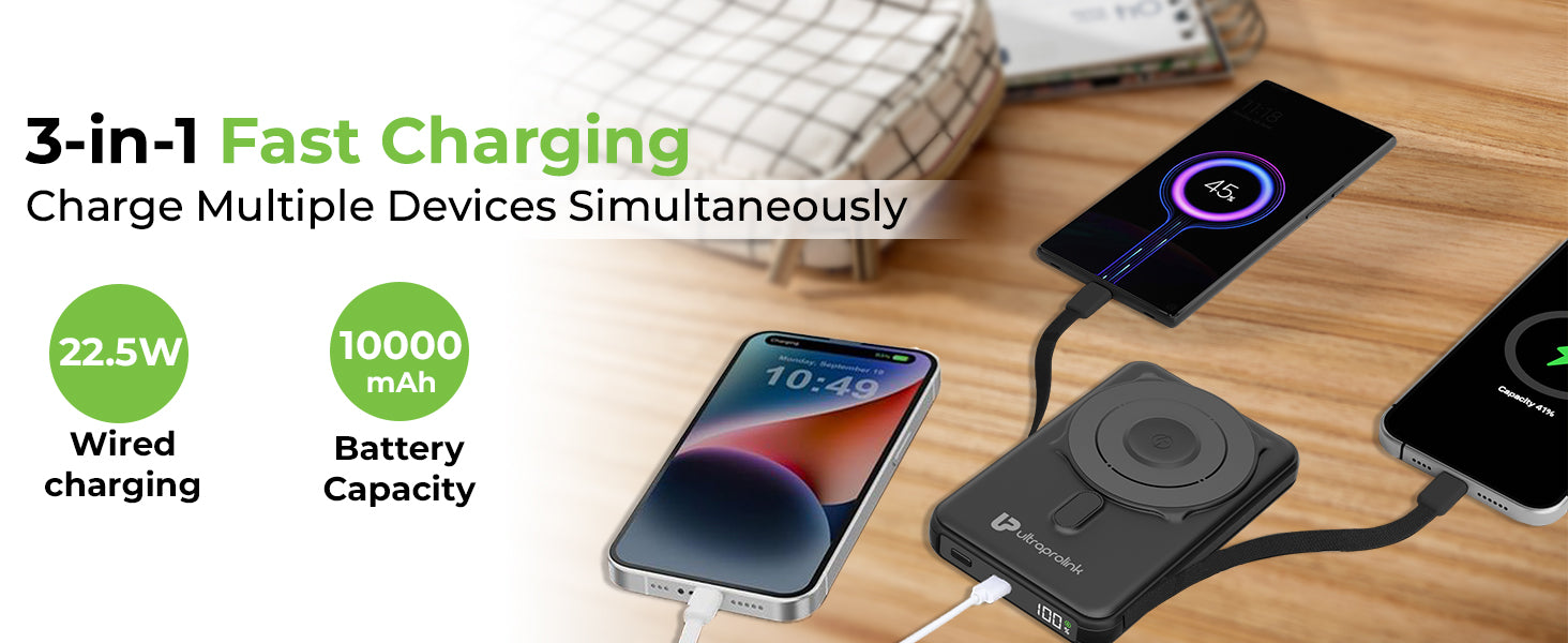 Equipped with a 10,000mAh / 38.5Wh battery, this power bank provides multiple charges for your devices. It can provide adequate back up for your iPhones, iWatch & Airpods + so many other gadgets which need cable charging, ensuring you stay powered throughout the day without worrying about running out of battery.