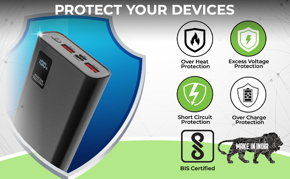 BIS Certified & made in India with built-in safeguards to protect your devices against excessive current, overheating, and overcharging during charging. Weighs a mere 410g & measures in at 140.80 x 27.70 x 69.30mm.