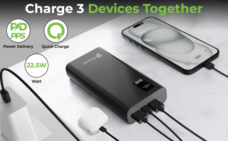 Charge any iPhone up to 50% in 30 minutes through the Type C PD port. Also Supports PPS 'Fast Charging' for Samsung flagship phones. It's also designed to fast fuel a Nothing Phone or Pixel Series phones which work on the PPS protocol.