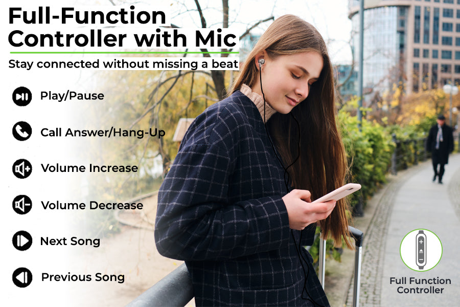 Stay connected without missing a beat. The in-line controller comes equipped with a built-in mic and volume controls, offering seamless hands-free calls and music management. Adjust the volume, pause or play tracks, and switch between calls and music effortlessly. Perfect for multitasking, these wired earphones with mic ensure convenience and functionality.