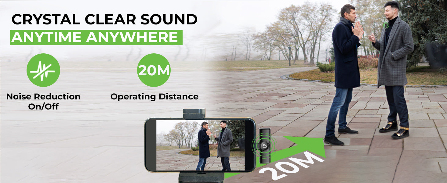 Capture every detail with the 360° omnidirectional mic, featuring intelligent active noise reduction, mute, and echo functions. Ideal for Lavalier, clip-on, and collar mic, ensuring professional audio quality for any environment.