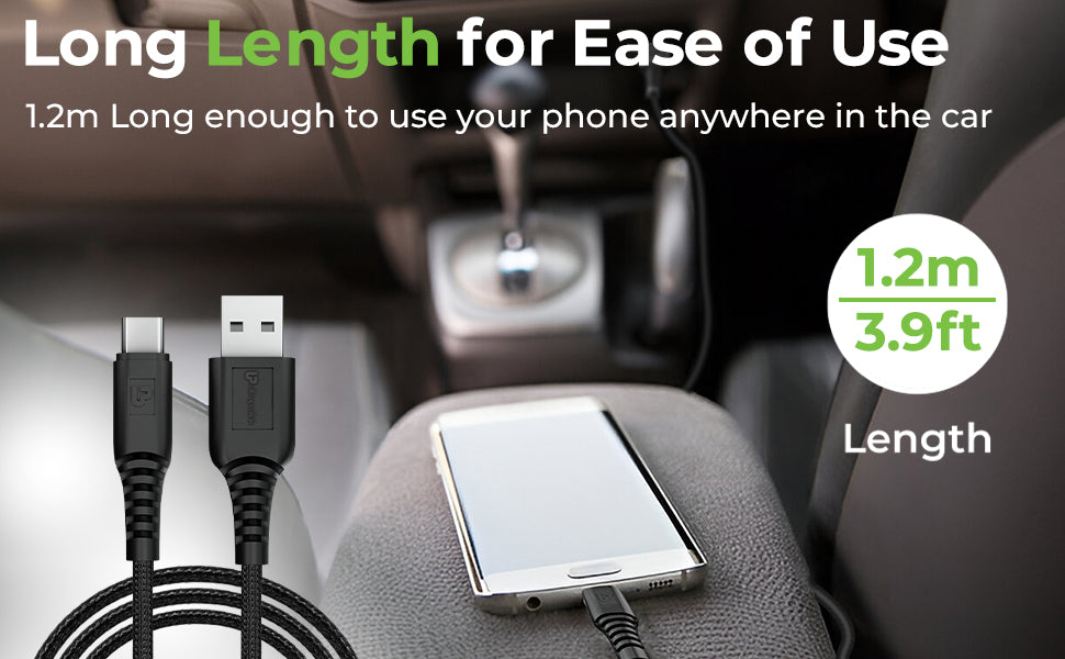 This USB C Cable comes with length of 1.2m/3.93ft which allows you to charge & access your device while lying on bed, sofa or the car backseat. Now be able to charge & use your phone even from a distance while its plugged into the charging socket.