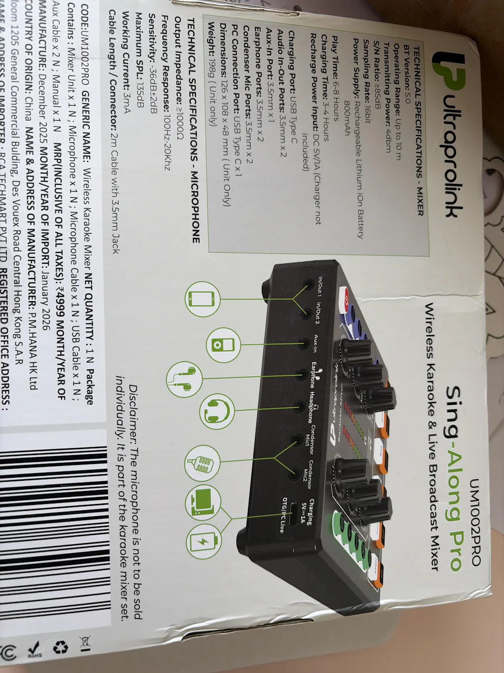 Sing-Along Pro connects easily to iPhones, Android phones, Laptops, PCs & tablets. It works well with all popular operating systems like iOs, Windows & Mac OS. Enjoy 6-8 hours of playtime with the built-in rechargeable battery. Recharge the mixer in 4 hours via the Type C port.