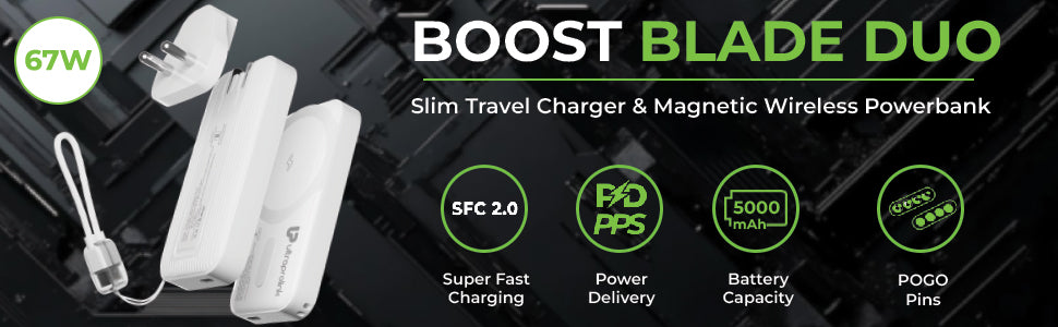 Folding flat pins for USA/Canada, India pin adaptor included; proudly Made in India. What’s in the Box: Travel Charger ×1, India Pin Adaptor ×1, USB-C to C Cable ×1, Manual. 12 Months Extendable Warranty.