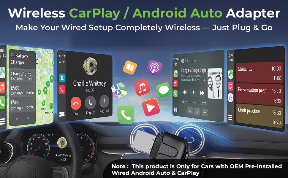Retain your car’s original OEM interface without compromise. The adapter seamlessly supports touchscreen, voice assistant, and steering wheel controls, letting you manage calls, music, and maps just like your factory-wired setup, but now completely wireless.