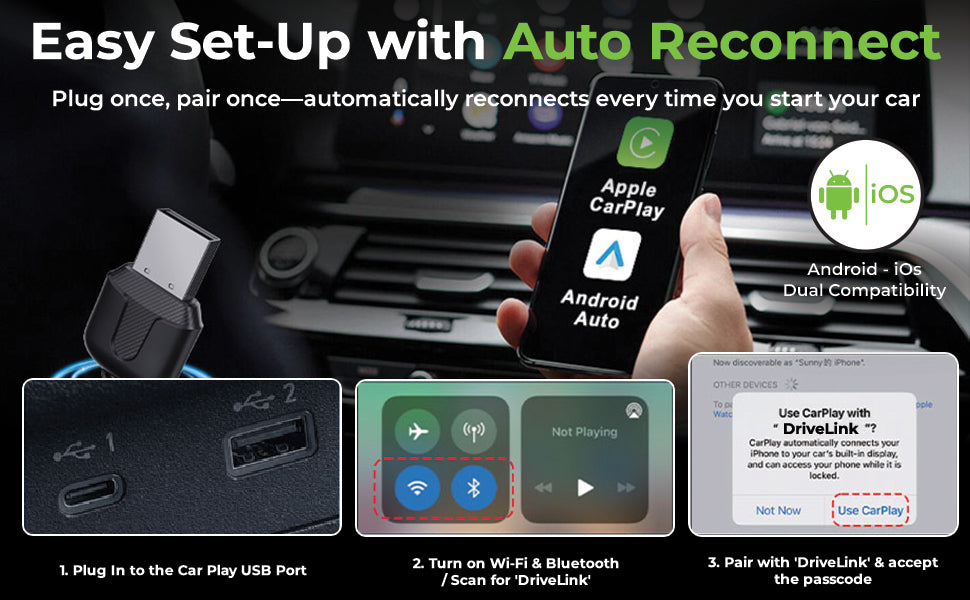 DriveLink | Android Auto/CarPlay Adapter | 2 in 1 Wireless Car Receiver| UM1221
