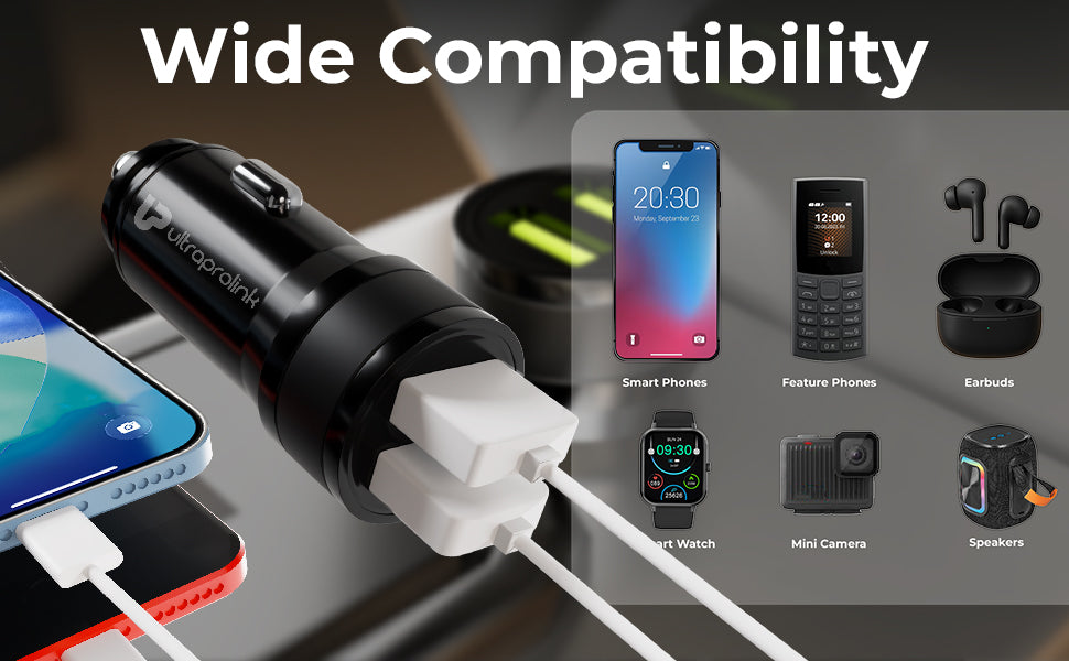 UltraProlink Mach12 Dual USB Car Charger with fast charging ports is Made in India and made for India under a highly quality controlled environment – designed & developed In India.