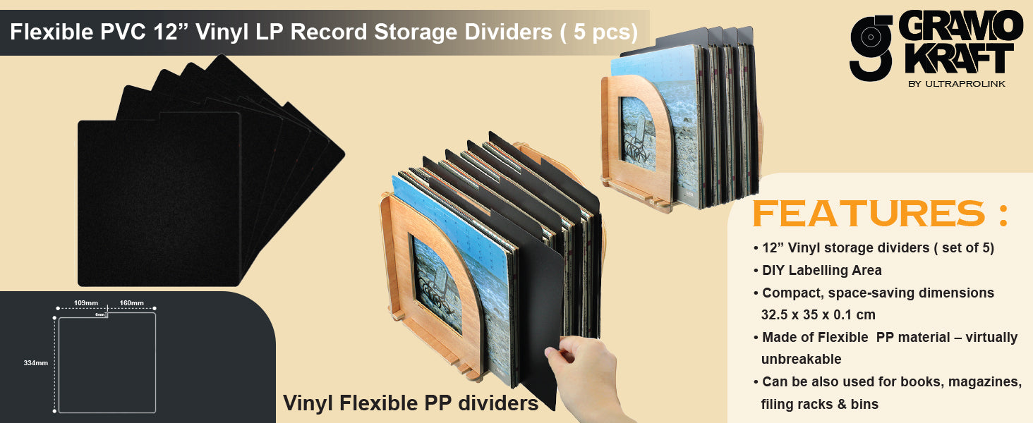 Give your vinyl record collection, magazines, files or other media the organization and display they deserve with the ULTRAPROLINK GRAMOKRAFT Alphabetical Dividers Organizer. Crafted in a Flexible PP vinyl build measuring 32.5 x 35 x 0.1 cm, these storage box dividers feature a DIY labelling area making it effortless to sort and browse through your LPs, records, magazines or office files. Designed for both function and style, these dividers are an elegant fit for any home décor, study or music room. Use these on racks, bins, shelves, desks or next to your stereo console for direct access to your collection. With multifunctional capabilities, these dividers serve as a vinyl record, CD, Books, magazine organiser or file crate. Bring style, structure and easy browsing to your collection with the ULTRAPROLINK GRAMOKRAFT dividers — the smart choice for audiophiles, collectors and home-office users alike.